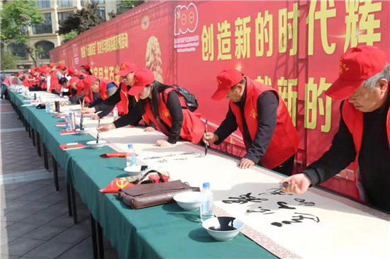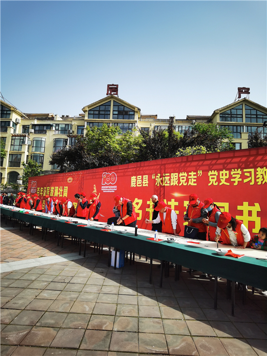啟動(dòng)儀式上,許四軍為縣委黨史學(xué)習(xí)教育實(shí)踐活動(dòng)志愿服務(wù)隊(duì)授旗;侯自峰宣讀了《鹿邑縣“永遠(yuǎn)跟黨走”黨史學(xué)習(xí)教育系列實(shí)踐活動(dòng)實(shí)施方案》;現(xiàn)場(chǎng)所有參加人員共同合唱了歌曲《沒(méi)有共產(chǎn)黨就沒(méi)有新中國(guó)》,觀看了群眾文藝匯演,參加了百名書法家、百名畫家同書同繪百米長(zhǎng)卷活動(dòng)。②8