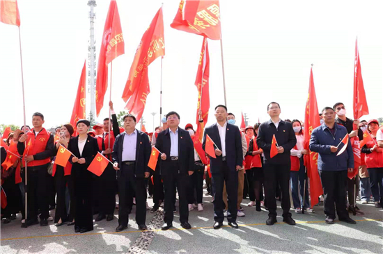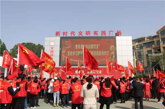 為慶祝中國(guó)共產(chǎn)黨成立100周年,扎實(shí)推進(jìn)黨史學(xué)習(xí)教育走深走實(shí),4月30日,鹿邑縣“永遠(yuǎn)跟黨走”黨史學(xué)習(xí)教育實(shí)踐活動(dòng)啟動(dòng)儀式在問(wèn)道苑舉行,拉開(kāi)了全縣黨史學(xué)習(xí)教育實(shí)踐活動(dòng)序幕??h委副書記許四軍出席啟動(dòng)儀式并宣布啟動(dòng)令??h委常委、縣委辦公室主任侯自峰,縣委組織部、宣傳部、統(tǒng)戰(zhàn)部相關(guān)負(fù)責(zé)同志參加啟動(dòng)儀式??h委常委、宣傳部部長(zhǎng)袁航主持儀式。來(lái)自全縣各單位、各鄉(xiāng)鎮(zhèn)、辦事處的黨員志愿服務(wù)隊(duì)代表和社會(huì)公益組織代表近千人參加了活動(dòng)。