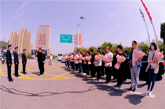 之前的5月1日下午,商水縣公安局15名公安民警輔警奔赴五個省份抓捕詐騙嫌疑人平安歸來,縣公安局同樣在周口高速口舉行歡迎儀式,高規(guī)格迎接抓捕組凱旋的勇士。王之棟、張俊華等參加歡迎儀式。