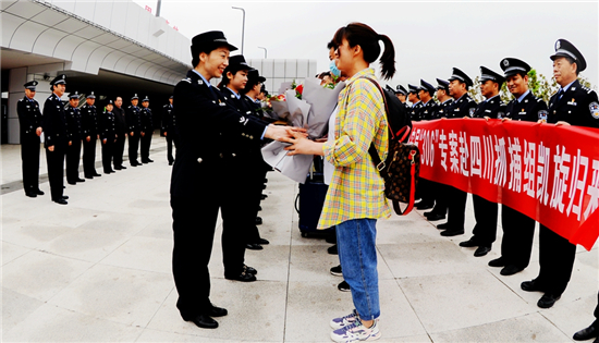 5月3日,一場中雨酣暢淋漓,為各地游客帶來清爽。16時10分,暴雨剛停,在周口東高鐵站,商水縣公安局舉行歡迎儀式,迎接該局“306”專案赴四川抓捕組凱旋??h政府黨組成員、公安局局長王之棟,政委張俊華帶領(lǐng)縣公安局全體黨委班子成員、機關(guān)警種負責人等百余名民警和市民迎接勇士們凱旋歸來。