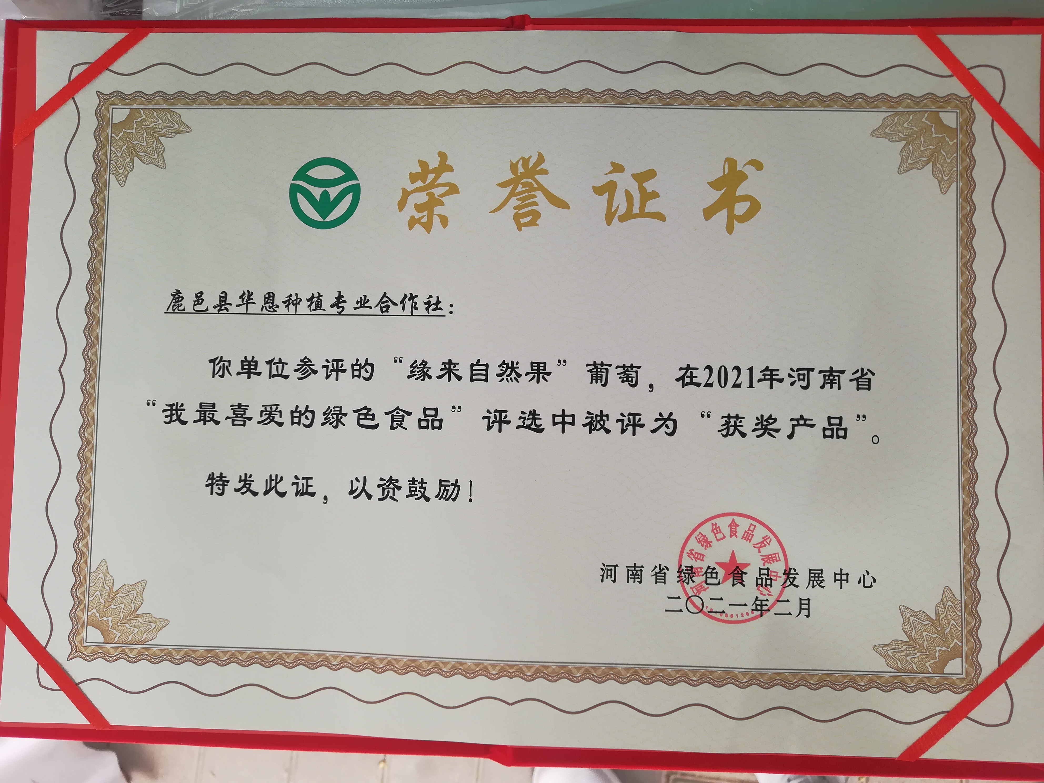 河南省綠色食品發(fā)展中心主任余新華宣讀了全國(guó)綠色食品原料標(biāo)準(zhǔn)化生產(chǎn)基地、全國(guó)綠色食品一二三產(chǎn)業(yè)融合發(fā)展示范園、河南省第三批 “三品一標(biāo)”示范基地獲證名單,第二十一屆中國(guó)綠色食品博覽會(huì)、2020河南(鄭州)國(guó)際現(xiàn)代農(nóng)業(yè)博覽會(huì)、上海國(guó)際現(xiàn)代農(nóng)業(yè)品牌產(chǎn)品展覽會(huì)、“一帶一路”(洛陽(yáng))國(guó)際農(nóng)業(yè)合作博覽會(huì)、2021年河南省“我最喜愛(ài)的綠色食品”獲獎(jiǎng)名單。與會(huì)嘉賓為獲證、獲獎(jiǎng)單位頒獎(jiǎng)授牌。來(lái)自鹿邑縣華恩種植專(zhuān)業(yè)合作社旗下的“緣來(lái)自然果”葡萄喜獲2021年河南省“我最喜愛(ài)的綠色食品”殊榮。