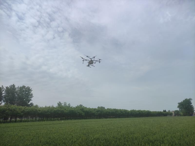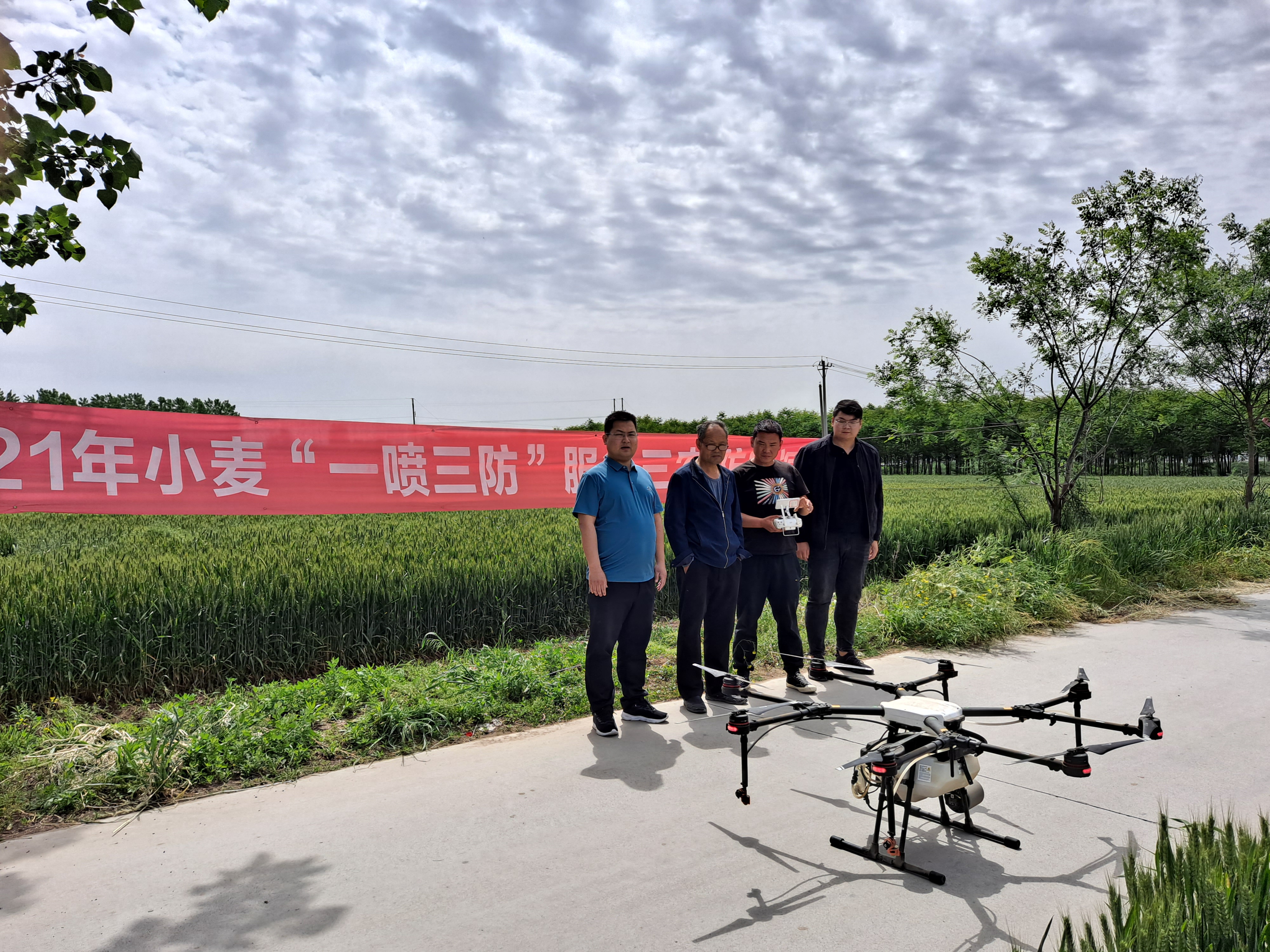 無人機植??蓪崿F(xiàn)農(nóng)藥自動定量、精準(zhǔn)控制、低量噴灑,增加農(nóng)藥對農(nóng)作物的穿透性,農(nóng)藥使用效率大幅提升,同時也減少了農(nóng)藥對土壤和環(huán)境的污染,有效實現(xiàn)“雙降” 。公司工作人員與項城市農(nóng)業(yè)農(nóng)村局植保站經(jīng)過協(xié)調(diào)溝通,調(diào)用了無人機進(jìn)行補噴,助力該合作社2021 年小麥“一噴三防”全面覆蓋工作完成。此舉得到了鄉(xiāng)鎮(zhèn)政府和種植戶一致好評。