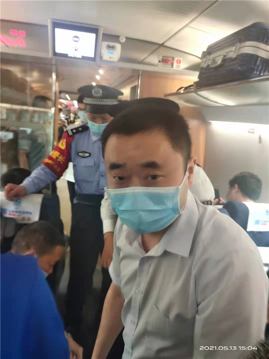 “車上有沒有醫(yī)護(hù)人員?請(qǐng)到12車廂協(xié)助救治工作?!?月13日15時(shí),漯河發(fā)往深圳的G279高鐵12車廂內(nèi)有一名男士腿部意外受傷,廣播員發(fā)出呼叫。鄲城縣第一醫(yī)療健康服務(wù)集團(tuán)南豐院區(qū)院長、主治醫(yī)師侯翰祥和城關(guān)鎮(zhèn)衛(wèi)生院院區(qū)院長、主管護(hù)師李云,張完鄉(xiāng)衛(wèi)生院院長仵峰從7車廂一口氣跑到現(xiàn)場參與救治工作,經(jīng)檢查,傷者無骨折、無大礙。