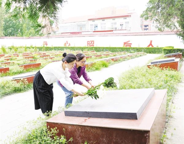 為表達對烈士的敬仰和懷念,記者和劉波濤烈士后人到鄲城烈士陵園,向劉波濤丁岐烈士合葬墓冢敬獻鮮花(如圖),聆聽劉波濤丁岐的傳奇故事,感受烈士濃濃的愛國情懷(相關(guān)文字報道及視頻,周口報業(yè)傳媒集團將陸續(xù)推出)。①9