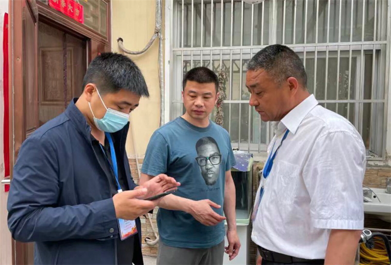 圖為川匯區(qū)人大常委會(huì)機(jī)關(guān)人員在推廣介紹“金鐘罩”反詐騙小程序
