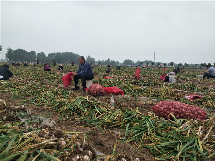 時下,正是大蒜收獲季節(jié),在太康縣獨(dú)塘鄉(xiāng)劉莊無公害大蒜種植基地田間地頭,蒜農(nóng)們正忙著采收、裝車、銷售,到處都是蒜農(nóng)收獲大蒜的忙碌景象,優(yōu)質(zhì)大蒜喜獲豐收讓蒜農(nóng)們個個笑逐顏開。
