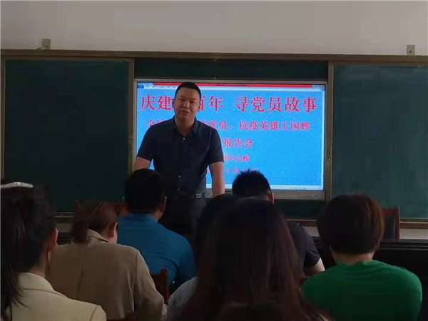 聽了王國輝所作的專題報(bào)告,大家紛紛表示:“王國輝是我們身邊的黨員模范代表,他的抗疫事跡和奉獻(xiàn)精神是一堂生動的黨課,在今后工作中,一定向抗疫英雄學(xué)習(xí),立足崗位、擔(dān)當(dāng)作為,用實(shí)際行動踐行立德樹人的初心使命,以更加飽滿的熱情投入到教育教學(xué)工作中去,以優(yōu)異的成績向建黨百年獻(xiàn)禮!”