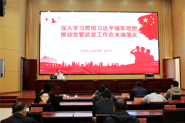 5月18日下午,鄲城縣委常委、人武部政委金仁旺結(jié)合黨史學(xué)習(xí)教育,以《深入學(xué)習(xí)貫徹習(xí)近平強(qiáng)軍思想 推動(dòng)黨管武裝工作在末端落實(shí)》為題,為全縣2021年春季干部理論培訓(xùn)班學(xué)員上專題黨課。