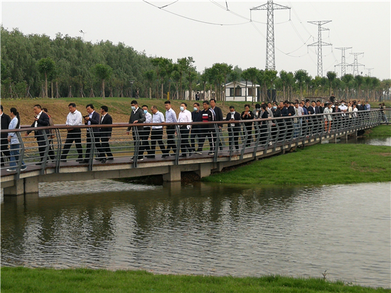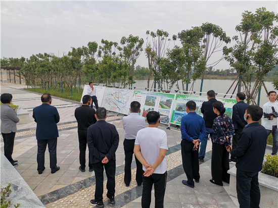 魚翔淺底、水岸沙洲、層林盡染、果香滿園........在流沙河魚翔湖節(jié)點工程,沈丘縣市人大代表漫步園路步道,映入眼簾的是親水棧道與綠水景觀、碧波湖水,呈現(xiàn)出一片恬淡悠然的生態(tài)湖之美、一體化城市生態(tài)之美。眼前如詩如畫的美景讓代表們感慨萬千,大干快上的周口更讓代表們感嘆不已。隨后,代表們先后來到中州大道橋南綠化工程、中原路跨沙潁河橋梁工程、沙潁河城區(qū)段治理二期北岸工程、洼沖溝水系和引黃調蓄工程、流沙河治理工程、芙蓉湖城市公園建設工程等地進行了實地觀摩。每到一處,代表們都認真聽取有關介紹,詳細了解項目建設情況和功能定位,紛紛為周口中心城區(qū)的新變化點贊。