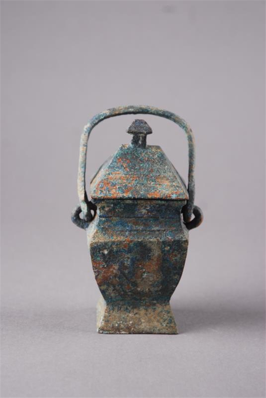 該墓藏酒器多是一個(gè)突出的特點(diǎn),酒器類的器物則應(yīng)有盡有,既有飲酒用的爵、觚、角、觶,也有盛酒用的尊、觥、卣、罍。還有溫酒用的斝,取酒用的勺以及盛酒或酒水調(diào)和用的盉[hé]等。尤其是“長子口銅提梁卣”的發(fā)現(xiàn),成為古墓最有特色的隨葬品之一。該文物是西周早期文物,通高30厘米,口長直徑13.5厘米,短徑10.8厘米。器體橢圓,拱形扁提梁,兩端有環(huán)與器兩側(cè)半環(huán)狀耳套接。蓋內(nèi)壁和器內(nèi)底均有銘文“長子口”3字。出土?xí)r器內(nèi)有1000克左右的液體,經(jīng)過檢測得知所盛是酒。