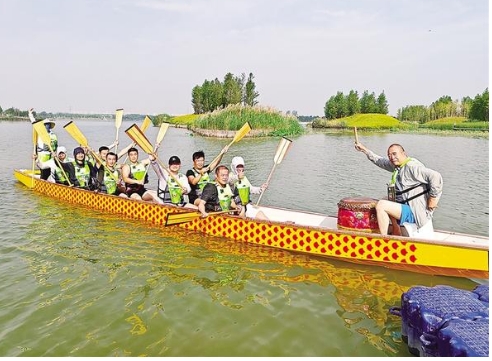 “咚咚咚……”近日,市城鄉(xiāng)一體化示范區(qū)引黃調(diào)蓄湖水面上水花翻涌,激昂的鼓點破空而來。2025“國緣杯”周口市第十屆中華龍舟賽的參賽隊伍正在進行最后的沖刺訓練。