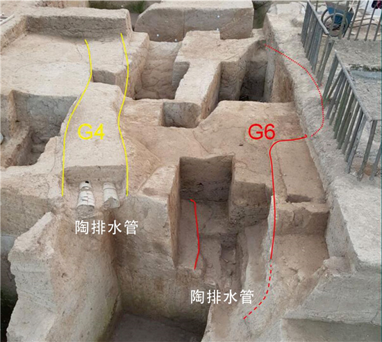 之后,考古隊(duì)新發(fā)掘出四組龍山時(shí)期陶排水管道,其中兩組位于南城門附近。2019年,又在城內(nèi)高臺(tái)式排房的室外墊土之下發(fā)現(xiàn)兩組東西向敷設(shè)的陶排水管道。這些陶排水管道,向西聯(lián)通這座古城的中軸線。這些陶排水管長(zhǎng)35到45厘米,表面裝飾籃紋、繩紋和方格紋,兩端有子母口,節(jié)節(jié)套合,構(gòu)思精巧,它們或縱穿城墻基礎(chǔ),或沿排房建筑的外緣平行分布,兩端有進(jìn)、出水口,與城內(nèi)的東西或南北向的排水溝相連通,是目前國(guó)內(nèi)發(fā)掘的年代最早、最為完備的城市排水系統(tǒng),對(duì)于研究我國(guó)早期城市的水資源管理系統(tǒng)具有在重要的意義。從發(fā)現(xiàn)的陶排水管道的情況上我們可以大致推測(cè),平糧臺(tái)城址可能受到水患,當(dāng)時(shí)先民始終關(guān)心如何把城內(nèi)積水排到城外。