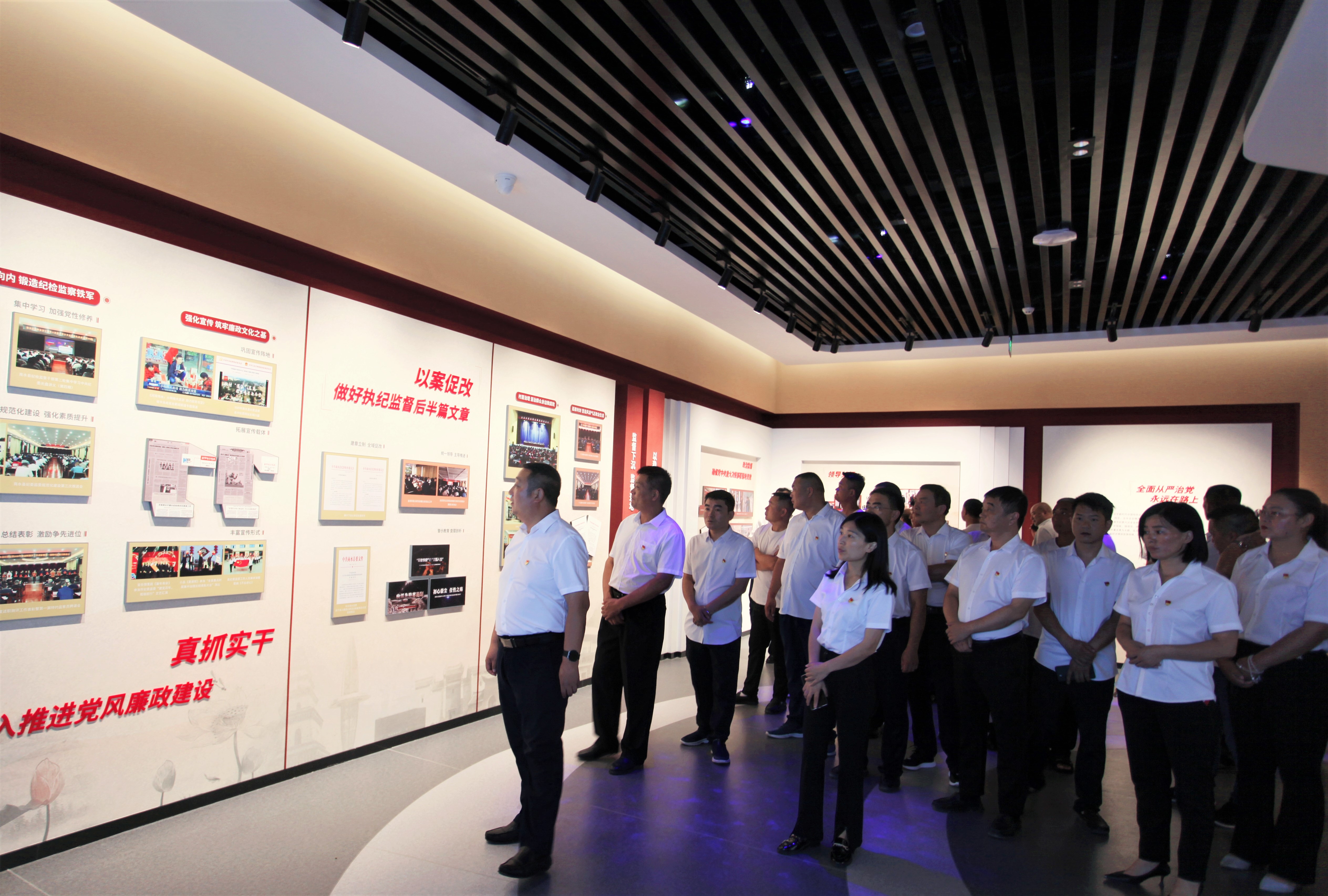 在講解員的帶領(lǐng)下,參觀人員認(rèn)真觀看了每一塊展板、每一張圖片、每一段視頻。廉政警示教育展廳內(nèi)綜合運(yùn)用圖文、場(chǎng)景再現(xiàn)、互動(dòng)體驗(yàn)及多媒體聲光電等形式,從歷史的深度展示了中國共產(chǎn)黨歷次黨代會(huì)不斷加強(qiáng)紀(jì)律建設(shè)、全面從嚴(yán)治黨的偉大歷程,又展示了黨的十八大以來查處的各級(jí)領(lǐng)導(dǎo)干部嚴(yán)重違紀(jì)違法和群眾身邊的“微腐敗”案例等,將廉政文化教育、反面典型教育、理想信念教育結(jié)合在一起,形式多樣,內(nèi)容豐富,既有警示又受教育。