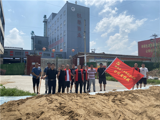 西華縣“萬人助萬企”活動(dòng)辦公室副主任、縣工信局局長(zhǎng)趙宏偉立即向縣“萬人助萬企”指揮部進(jìn)行了匯報(bào),并組織工信局防汛應(yīng)急突擊隊(duì)16名隊(duì)員迅速趕往西華縣凱馨面粉廠,裝沙袋,加固糧倉,運(yùn)沙土,筑牢廠區(qū)第一道防水隔離帶。防汛應(yīng)急突擊隊(duì)隊(duì)員僅用2個(gè)小時(shí)的時(shí)間完成了企業(yè)的防汛要求,企業(yè)負(fù)責(zé)人十分滿意。 ③7