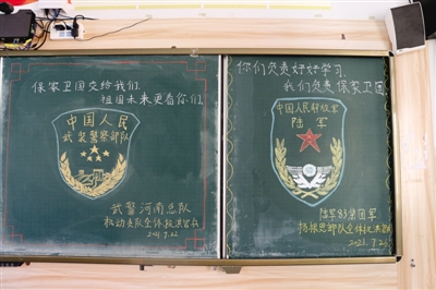 當(dāng)抗洪官兵結(jié)束任務(wù)離開時(shí),他們分別在學(xué)校留下了“最美黑板報(bào)”。