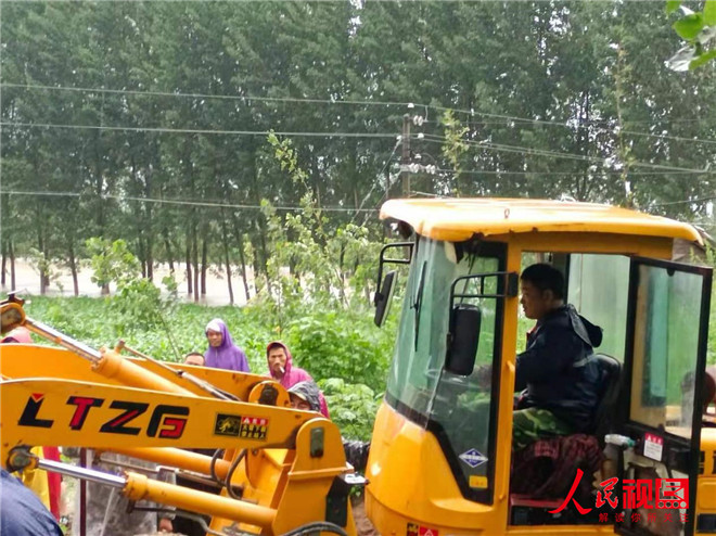 雨越下越大,衛(wèi)河水位持續(xù)上漲,永康段因前期澆地破開(kāi)的口由于水流量過(guò)大,出現(xiàn)缺口,群眾的生命財(cái)產(chǎn)安全受到了威脅,河上巡邏的村干部發(fā)現(xiàn)衛(wèi)河一處排污口不斷往外涌水,立即報(bào)告給張乾書(shū)記,此時(shí),張乾家中剛做好午飯,張書(shū)記把碗往桌上一放,還沒(méi)來(lái)得及吃一口,穿著雨衣就沖出門(mén)外,趕到現(xiàn)場(chǎng),看到情況十分緊急,千鈞一發(fā)之際,他不顧危險(xiǎn),大喊一聲“我來(lái)!大家把沙袋遞給我!”縱身跳入湍流的河中,只見(jiàn)他佝僂起身體,降低重心,以防被急流沖倒,一邊等著岸上接力過(guò)來(lái)的沙袋,在他抬頭等著接沙袋的時(shí)候,雨水打得他的眼睛都睜不開(kāi),他瞇著眼睛將一袋袋沙袋壘到衛(wèi)河封堵口,成功封堵缺口。經(jīng)過(guò)一夜的努力,和此時(shí),已經(jīng)夜里四點(diǎn)鐘,張書(shū)記全身濕透,雙腿被冷水泡得瑟瑟發(fā)抖,剛被人拉上岸,又有人來(lái)說(shuō)共產(chǎn)主義渠永康段又出現(xiàn)決堤。張乾書(shū)記二話沒(méi)說(shuō),又號(hào)召村上幾十人,立即趕到現(xiàn)場(chǎng),指導(dǎo)防汛人員進(jìn)行搶險(xiǎn)。“先挖溝,趕緊把水排掉,如果大堤經(jīng)過(guò)長(zhǎng)時(shí)間的浸泡,極容易形成塌方?!弊屑?xì)觀察險(xiǎn)情后,張乾趕緊吩咐道。為了填大堤,他親自開(kāi)著鏟車(chē)填放沙袋,但是由于大堤被水沖垮,已經(jīng)承受不住鏟車(chē)的重量,此時(shí),他反應(yīng)迅速,趕緊倒車(chē)返回岸上,幸好沒(méi)有掉入河中,隨即又發(fā)動(dòng)村內(nèi)群眾開(kāi)來(lái)自家的兩輪、三輪車(chē)?yán)^續(xù)王河堤上面運(yùn)送沙袋,但是由于水流量太大,杯水車(chē)薪,又聯(lián)系鎮(zhèn)上的領(lǐng)導(dǎo),協(xié)調(diào)了周邊村莊的黨員群眾一起,經(jīng)過(guò)連夜奮戰(zhàn),終于將決堤處堵住。