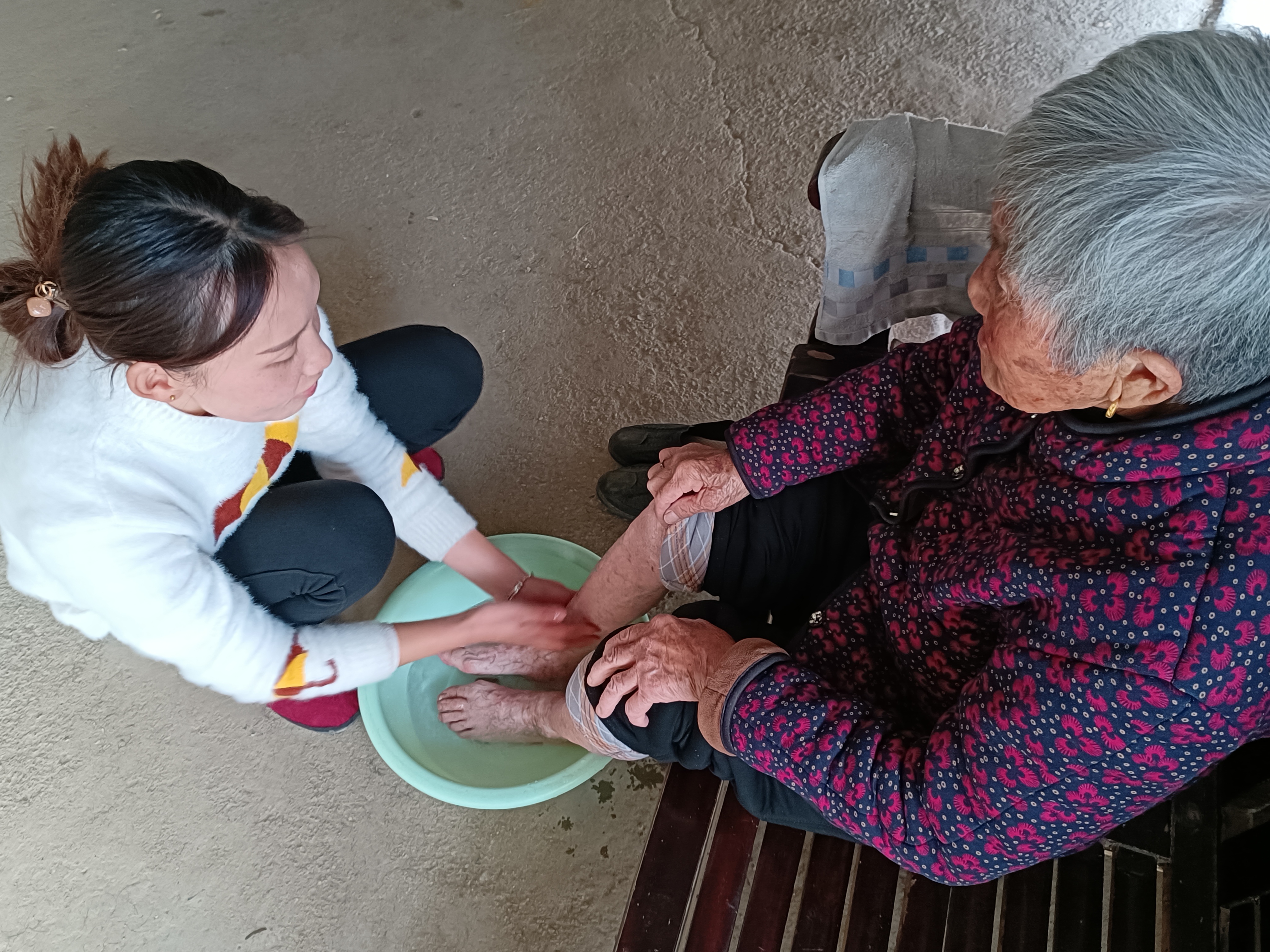 楊秀真老人有三子三女,她跟著小兒子過。今年8月份,一向身體硬朗的楊秀真出現(xiàn)了行動不便的癥狀,被送往醫(yī)院后檢查出腦梗。確診后,一輩子要強的楊秀真情緒低落,起初張書艷以為婆婆只是因為生病心情不好。一次楊秀真洗過腳后,看著低頭給她擦腳的張書艷,說出心里話:“閨女,我成拖累了……”