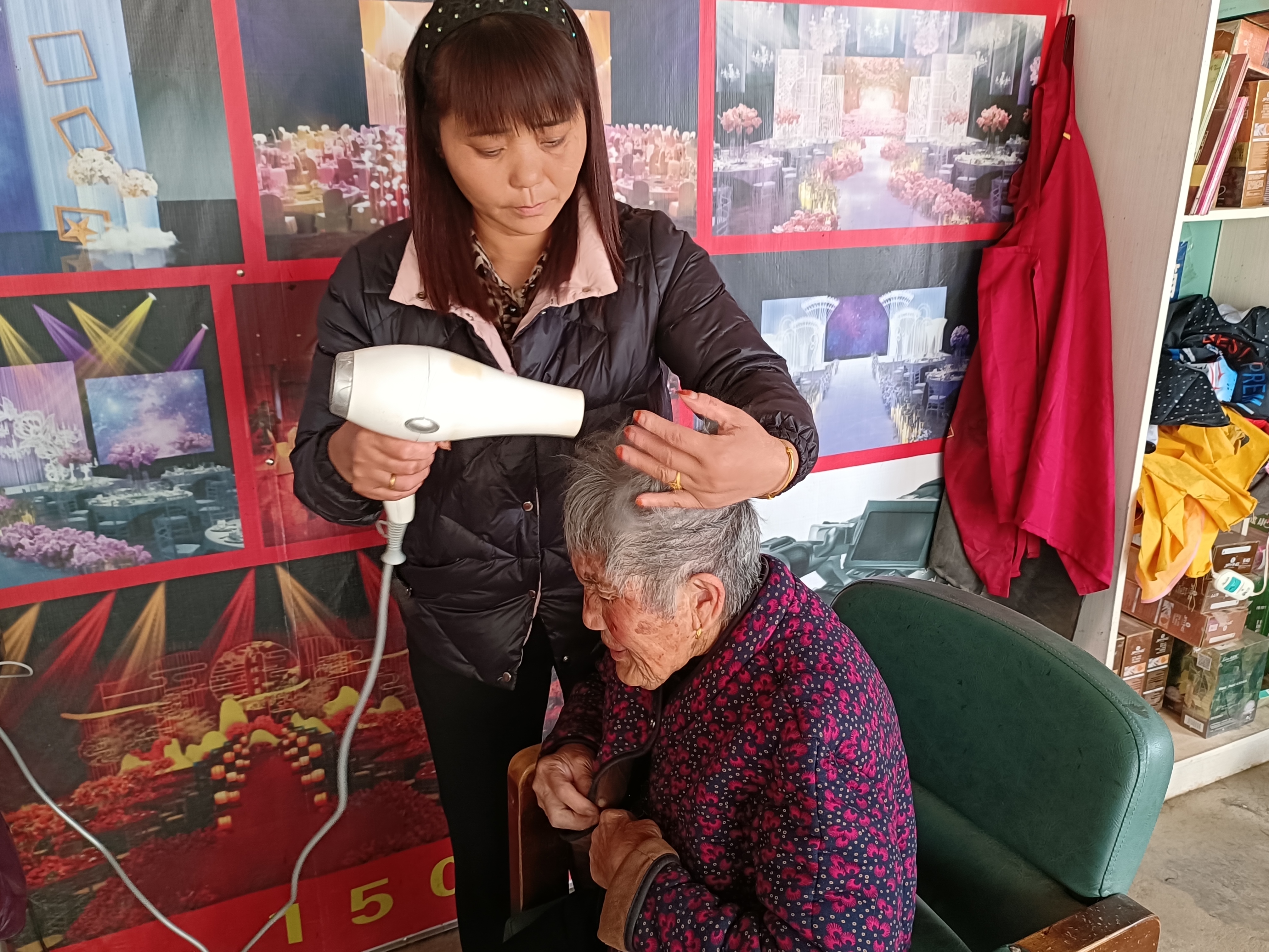 11月3日,記者接到熱線電話,說周口市城鄉(xiāng)一體化示范區(qū)搬口辦事處搬口行政村有位媳婦叫張書艷,她常年照顧90歲高齡的婆婆非常盡心。當天下午,記者來到位于周口市第十六初級中學附近的名流美發(fā)店,見到了忙著給客人理發(fā)的張書艷,她婆婆楊秀真坐在旁邊,兩人之間的交流宛若親母女。