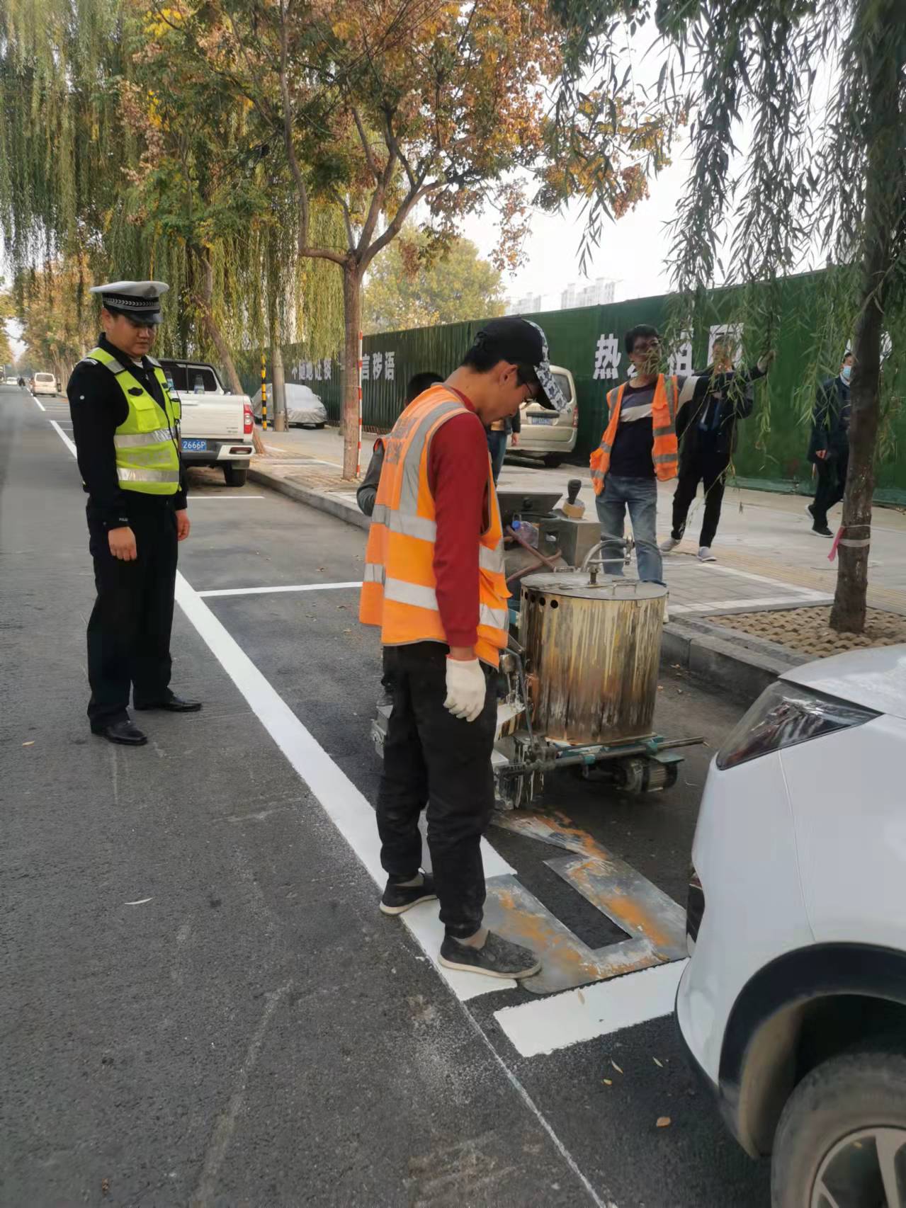 當日下午,記者在黃河路看到,施工人員正在熟練地操作標線機,認真細致地施劃減速震蕩標線。市公安局交通管理支隊設施維護中心(以下簡稱設施維護中心)工作人員黃勇說:“在創(chuàng)文期間,設施維護中心加大對道路護欄的清洗力度,完善交通信號燈的維護,清除學校門口不合理的停車位,修剪遮擋交通設施的樹枝,排除路口的交通隱患?!?/p>
