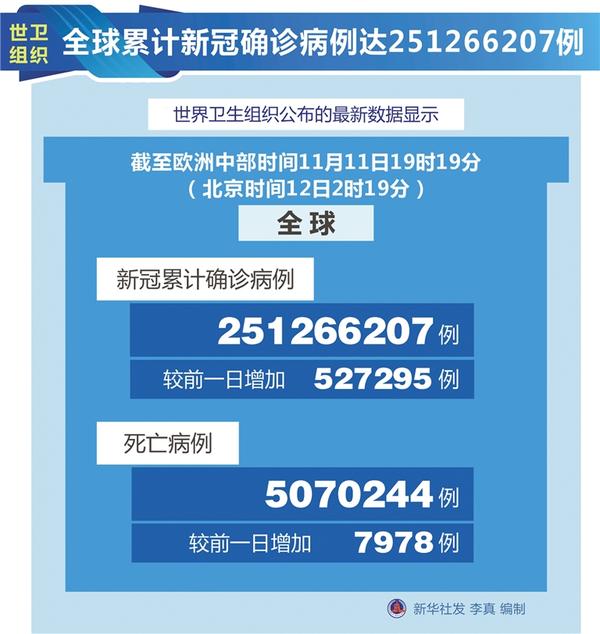 世衛(wèi)組織全球累計新冠確診病例達(dá)251266207例