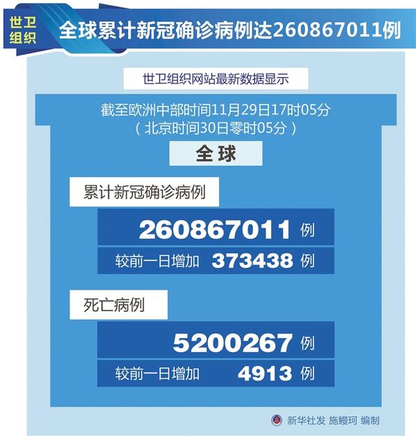 全球累計新冠確診病例達260867011例