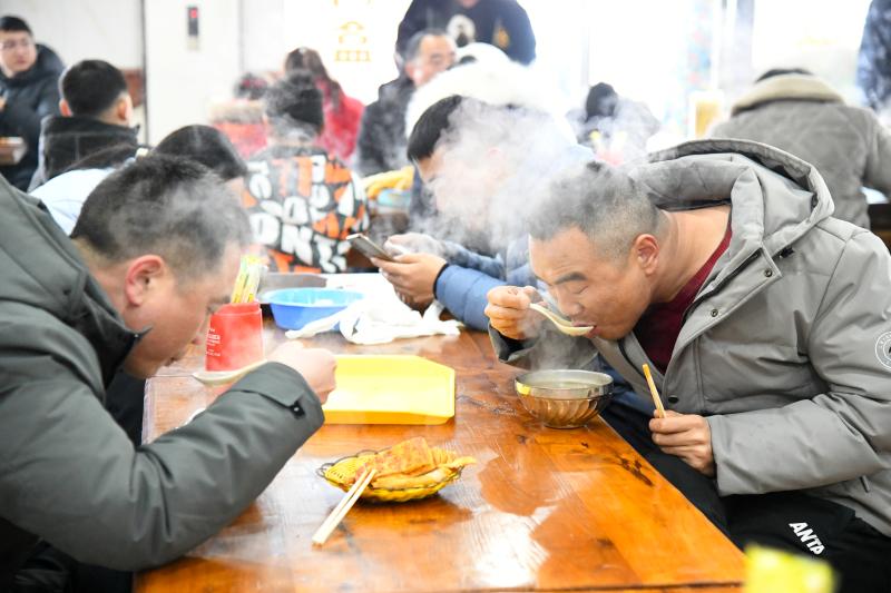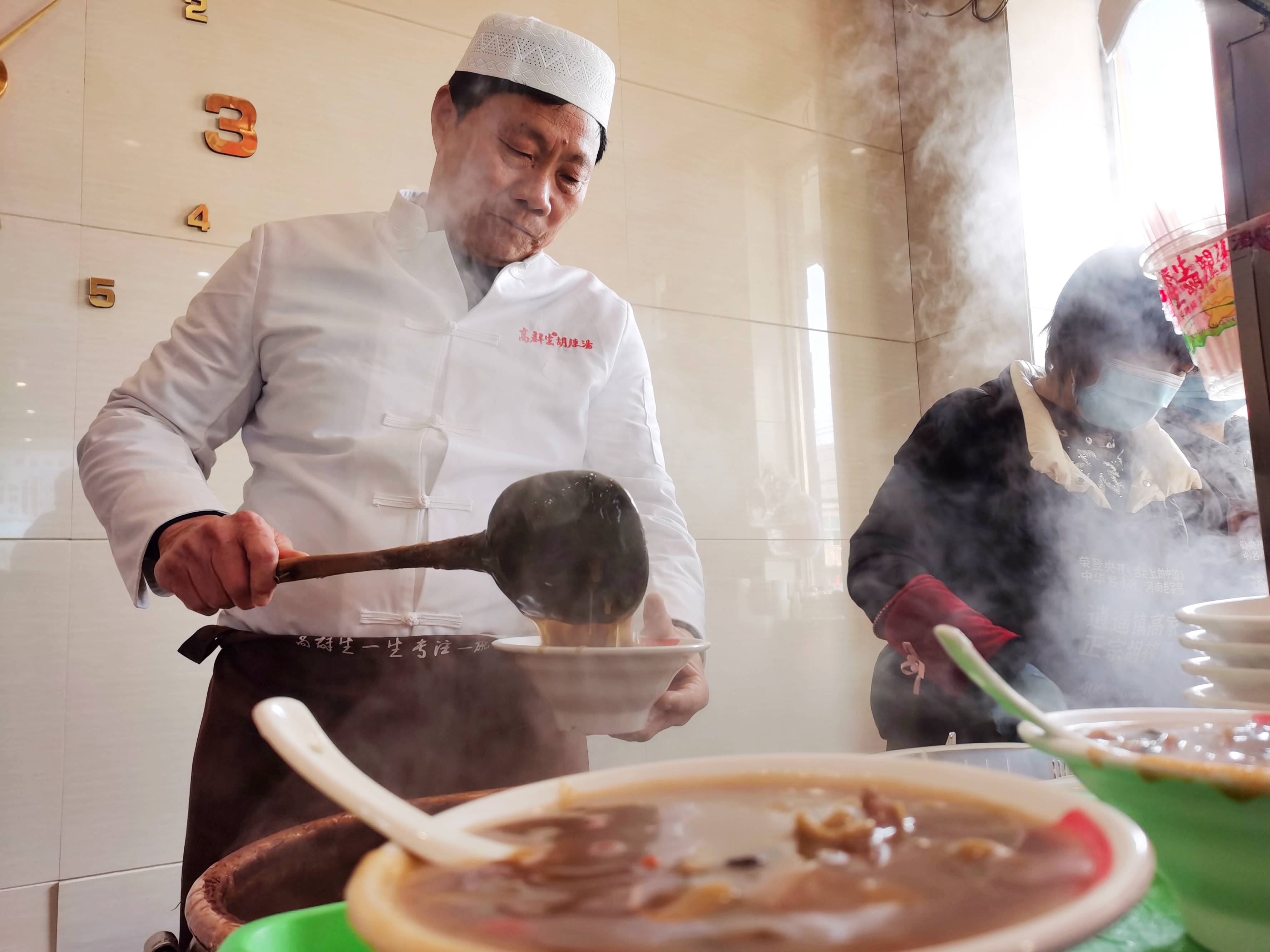 在老佟家胡辣湯店,趕在新年即將到來(lái)時(shí)喝湯的老百姓