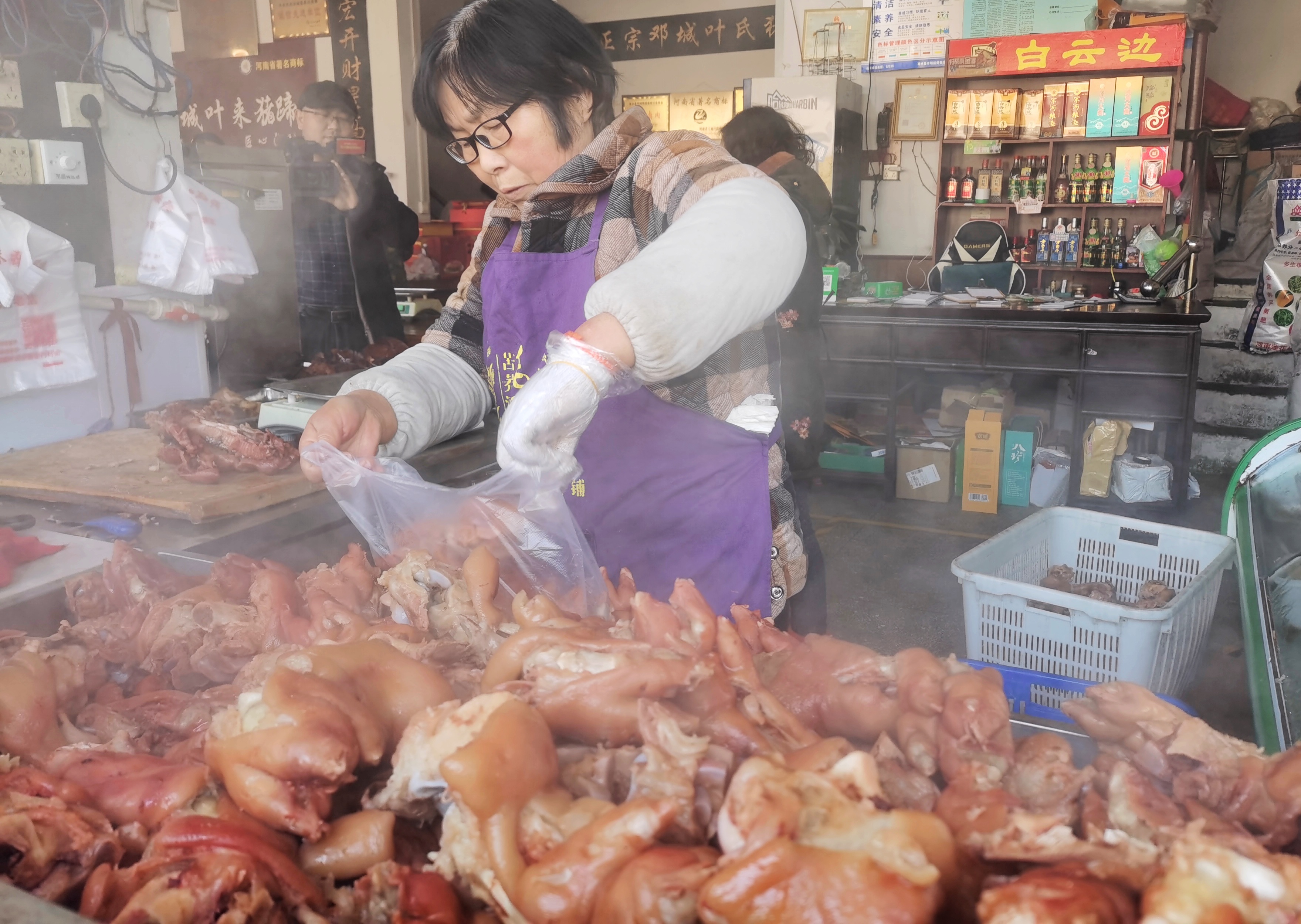 鄧城葉來(lái)豬蹄老店,剛出鍋的豬蹄是搶手貨,即將端上新年餐桌