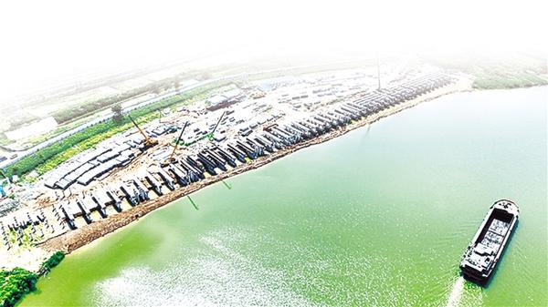 鹿邑港區(qū)玄武作業(yè)區(qū)于2021年5月底破土動工,批復(fù)岸線118米,建設(shè)2個500噸級泊位,設(shè)計年通過能力為散貨進出口100萬噸。目前,鹿邑港區(qū)玄武作業(yè)區(qū)主體工程已全部完工,機械作業(yè)設(shè)備已全部到位。記者在現(xiàn)場看到,工人正在進行后方陸域及服務(wù)區(qū)建設(shè)。