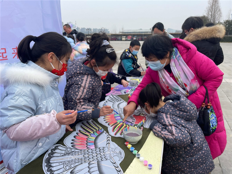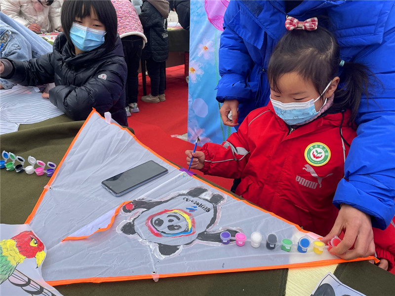 “媽媽你看,我畫(huà)的冰墩墩可愛(ài)嗎?”2月15日上午,“放飛春天——兒童DIY手繪風(fēng)箏”活動(dòng)在周口市文化藝術(shù)中心西廣場(chǎng)如期舉辦。一名身穿紅色棉服的小女孩在媽媽的幫助下,創(chuàng)作完成了一只畫(huà)有“冰墩墩”形象的手繪風(fēng)箏。