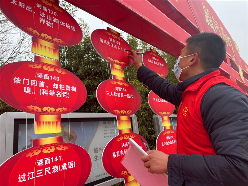 “阿姨您好!148號(hào)燈謎的謎底是‘香皂’?!?月15日,在周口市文化藝術(shù)中心西廣場(chǎng),正在舉行“潁河春燈——元宵燈謎猜猜猜”活動(dòng)。“我最喜歡猜燈謎了,猜對(duì)以后我還能拿到一個(gè)玩具小飛機(jī),真開(kāi)心!”說(shuō)話的這個(gè)小男孩姓汪,今年8歲,在今天這場(chǎng)猜燈謎活動(dòng)中,他是第一位給出正確答案的參與者。