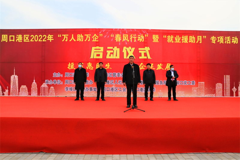 2月22日,周口港區(qū)舉辦2022年“萬人助萬企”“春風行動”暨“就業(yè)援助月”啟動儀式,通過舉辦一系列活動,為企業(yè)和求職者牽線搭橋。港區(qū)黨委書記孫鵬宣布啟動儀式開幕,管委會主任胡軍華在儀式上致辭,港區(qū)領導杜廣賢、劉學慶、李素芹參加活動。