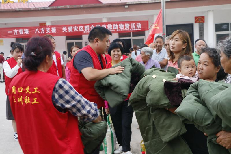 去年7月底,面對(duì)來(lái)勢(shì)洶洶的雨情汛情,三川社工迅速反應(yīng),立即組建了由60名社工、義工組成的防汛救災(zāi)突擊隊(duì),連續(xù)10天在賈魯河沿岸3個(gè)村莊和二板橋段開展防汛值守;組織40名社工、義工裝卸防汛救災(zāi)物資,向川匯區(qū)、西華縣、扶溝縣30多個(gè)防汛值守點(diǎn)和居民安置點(diǎn)運(yùn)送食物和救災(zāi)物資。