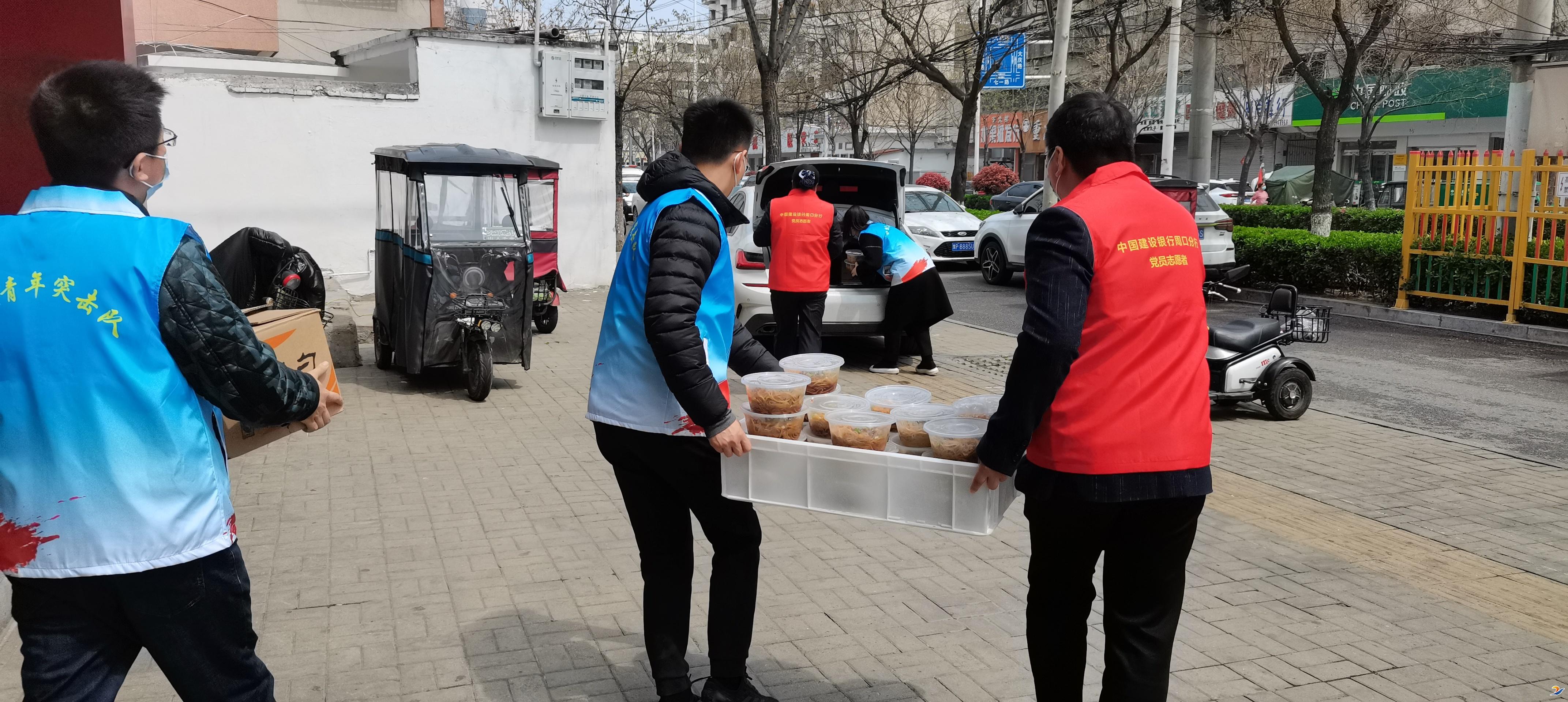 建行周口分行團(tuán)委書記張聰穎說:“疫情發(fā)生后,我們建行就一直想為疫情防控貢獻(xiàn)力量,得知咱們的卡點(diǎn)工作人員吃飯成了問題,就組織我們的青年志愿者和愛心餐飲店一起開展了這次愛心送餐活動。我們將持續(xù)為抗擊疫情作出貢獻(xiàn),也相信通過大家的共同努力,疫情會早日過去?!?周建行)②8