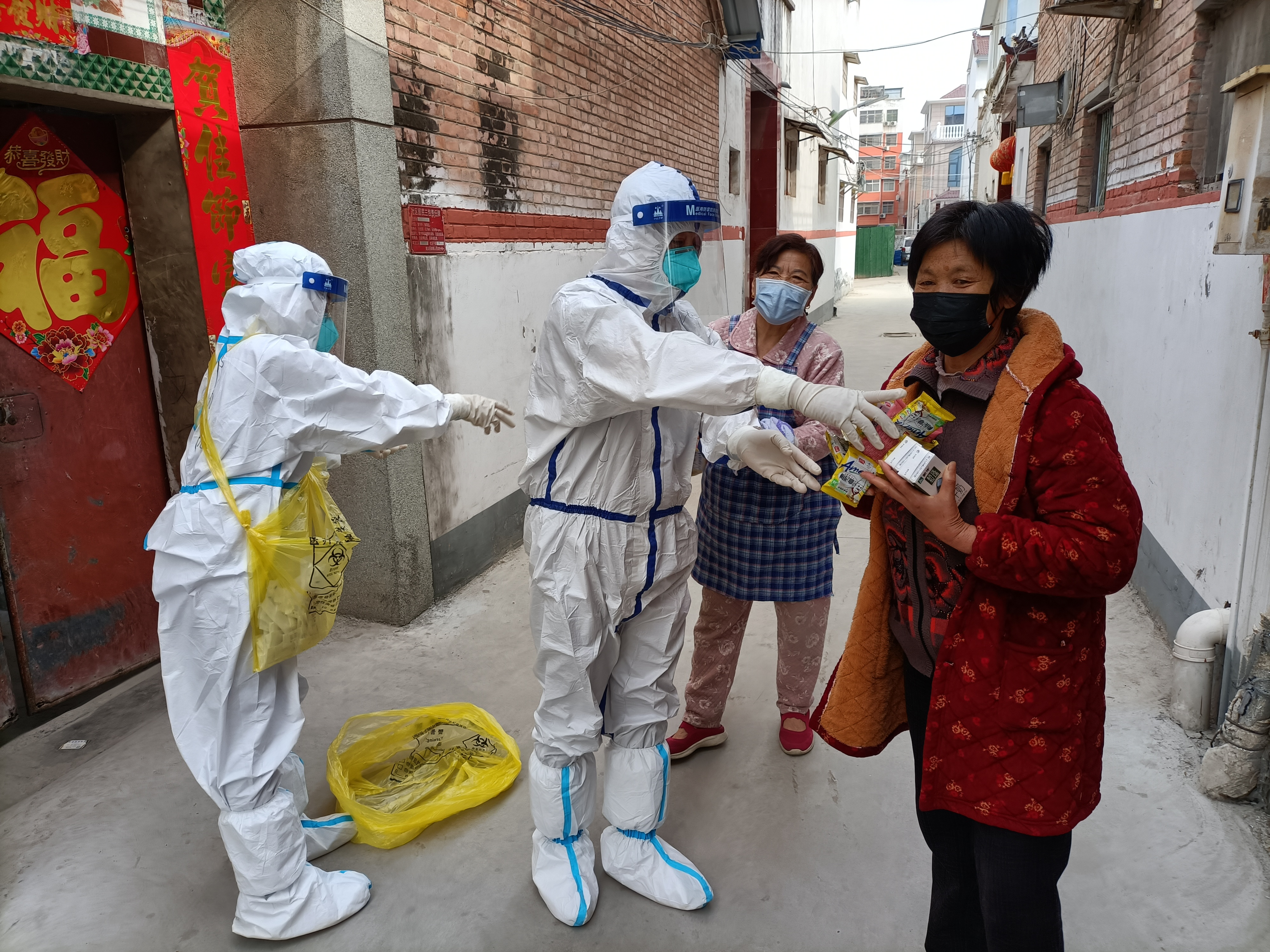 到達(dá)太康后,王群禮被分到了城關(guān)回族鎮(zhèn)封控區(qū)進(jìn)行入戶(hù)核酸采集,當(dāng)時(shí)的他也很緊張,認(rèn)真地穿防護(hù)服,熟記采集核酸的每一個(gè)動(dòng)作要領(lǐng),然后投身抗疫最前線。在入戶(hù)采樣的時(shí)候,王群禮發(fā)現(xiàn)有一個(gè)小女孩獨(dú)自在家,她每次聽(tīng)到敲門(mén)聲都是先開(kāi)一點(diǎn)縫,悄悄觀察外面,當(dāng)看到是防疫人員時(shí),才慢慢打開(kāi)門(mén)?!拔铱梢钥闯鏊目謶趾蜔o(wú)助,不知道她晚上怕不怕,會(huì)不會(huì)做飯,問(wèn)她怎么吃飯,她也不說(shuō)話,我心里很不是滋味。”從那天開(kāi)始,王群禮每次入戶(hù)采核酸的時(shí)候,就幫她帶點(diǎn)吃的,王群禮會(huì)把他的早餐留給她,還把自己的水果、零食也都送給她。