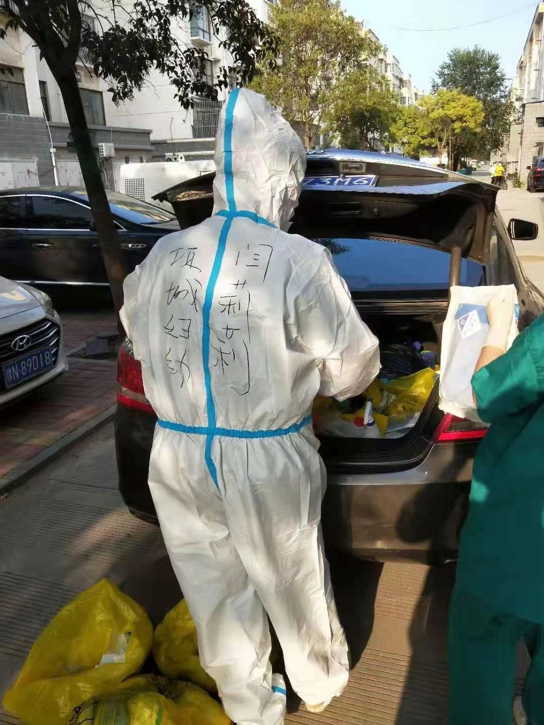 2021年11月,項(xiàng)城市婦幼保健院又一次接到前往扶溝游家村抗疫的通知,閆莉莉再次以逆行者的姿態(tài)前往抗疫前線采集核酸。核酸采樣是一項(xiàng)高強(qiáng)度工作,采集人員身著防護(hù)服后需要連續(xù)幾個(gè)小時(shí)不喝水、不去廁所。采樣時(shí)要手疾眼快、精準(zhǔn)到位,薄薄的乳膠手套每次用冰冷的酒精消毒后都緊緊地貼在手指上,手指都被凍僵了。