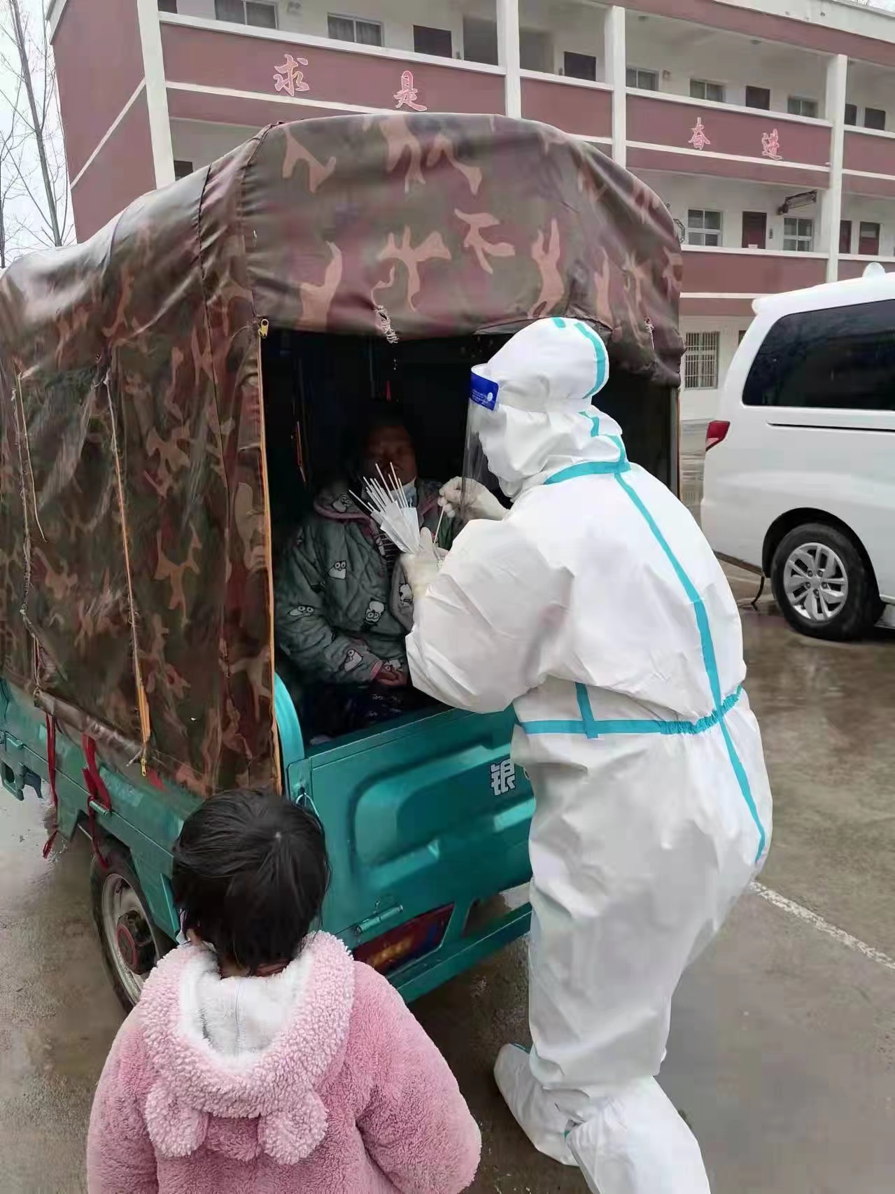 3月22日接到援太任務(wù)后,張俊華迅速和全縣200名醫(yī)護(hù)人員趕赴太康,并于次日凌晨3時醫(yī)療隊到達(dá)太康?!拔覀兠刻炝璩?點起床,5點到達(dá)采集點開始工作,不敢多吃飯,不敢多喝水,擔(dān)心穿脫防護(hù)服延誤采樣時間。中午餓了,簡單吃點東西后繼續(xù)工作……”張俊華回憶道。幾天后,為避免交叉感染,按照市衛(wèi)健委要求,他們?nèi)霊舨杉怂針颖?。張俊華和其他隊員背著用塑料袋制成的背包,裝上棉簽和取樣管,一家一家地跑。一天下來,他們的腳上磨出了泡,臉上、手上都是勒痕。面對各種困難,他們迅速調(diào)整方案,一邊和社區(qū)人員組織群眾維持秩序,一邊進(jìn)行核酸采集工作。工作臨近結(jié)束時,太康縣板橋鎮(zhèn)和常營鎮(zhèn)政府為他們頒發(fā)了榮譽證書。