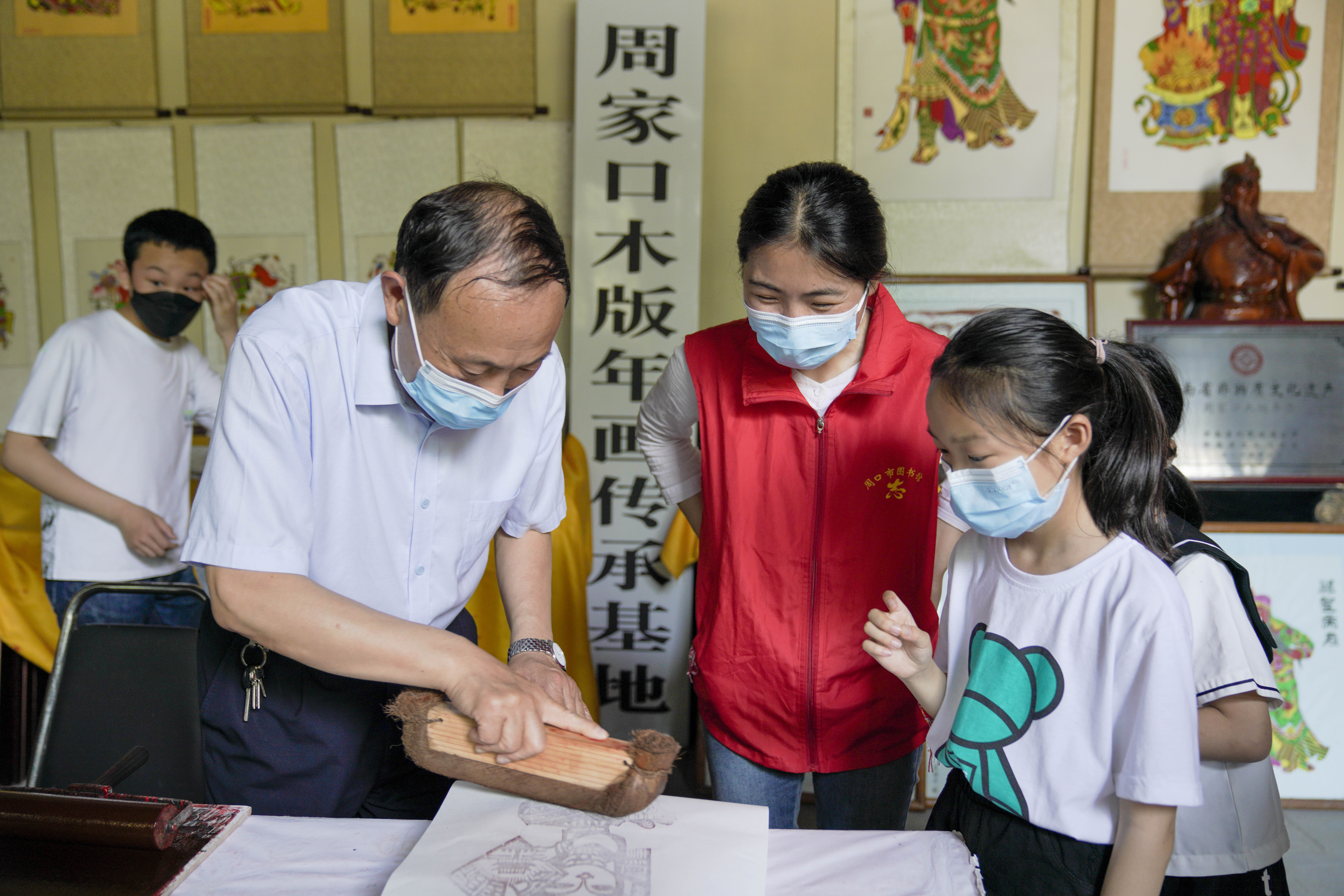上午,20名小朋友身著漢服,佩戴香囊在周口市關(guān)帝廟民俗博物館認真聆聽講解員講述端午歷史意義及文化內(nèi)涵。隨后,孩子們在省級非物質(zhì)文化遺產(chǎn)周家口木版年畫傳承人夏明月老師的帶領(lǐng)下,學(xué)習(xí)木版年畫的相關(guān)知識和制作過程,并親手制作了木版年畫。活動中,孩子們還為參觀的游客朗讀了《離騷》選段,感受2000多年前偉大的愛國主義詩人屈原熱烈的愛國情懷。
