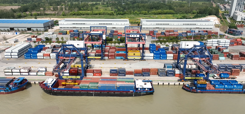 繁忙的淮安港。在自動化集裝箱碼頭,貨船頻繁進出,集裝箱不斷被起重機吊起、裝運,繁榮忙碌而又秩序井然。據(jù)了解,目前淮安全市碼頭岸線28公里,港區(qū)7個、碼頭116座、泊位389個,其中千噸以上泊位92個,年設(shè)計吞吐能力1.1億噸,其中集裝箱碼頭吞吐能力50萬標箱。2021年,淮安被交通運輸部確定為“全國內(nèi)河主要港口”。運行內(nèi)河集裝箱航線14條,上游覆蓋河南周口、山東、湖北、安徽等地,下游通達銜接江蘇沿江沿海、上海等地。2021年完成集裝箱吞吐量31.07萬標箱。