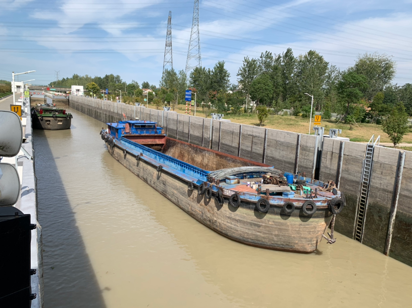 楊莊船閘是復線二級船閘,高良澗船閘是三線二級船閘,其外部環(huán)境優(yōu)雅,堪稱花園級單位,均實現(xiàn)了全天24小時通行。高良澗船閘是淮河航道入京杭大運河的第一道船閘,隨著上游豫皖兩省內河航運的發(fā)展,它成為淮安市最繁忙的船閘。從周口駛出的貨船,通江達海必經這里。9月24日我們在高良澗船閘采訪時,就有3艘周口籍貨船等候過閘。在高良澗船閘負責同志的熱情幫助下,我們來到洪澤湖邊,登上豫吉祥960號船。周口籍船主孫光峰介紹,以前過這個閘,最多要等10天時間,現(xiàn)在當天來當天就能走,效率提高實在太多了。