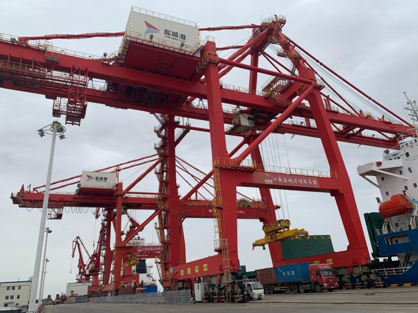 他們的努力得到了巨大回報:2021年,鹽城港吞吐量突破1億噸,同比增長62.38%,集裝箱吞吐量達(dá)到40萬標(biāo)箱,同比增長50%。按交通運(yùn)輸部統(tǒng)計數(shù)據(jù),貨物吞吐量和集裝箱吞吐量增速均為全國沿海54個港口第二位。