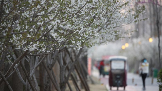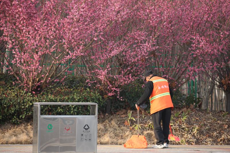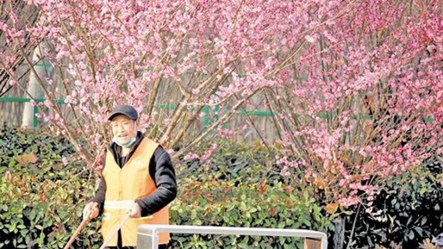 ?3月11日,一名環(huán)衛(wèi)工人在中心城區(qū)光明路旁清掃飄落的花瓣。連日來,隨著氣溫逐漸升高,周口市中心城區(qū)路旁、湖邊、花園里的花競相綻放,為周口全力營造宜居、宜業(yè)、宜游城市增添了靚麗色彩。