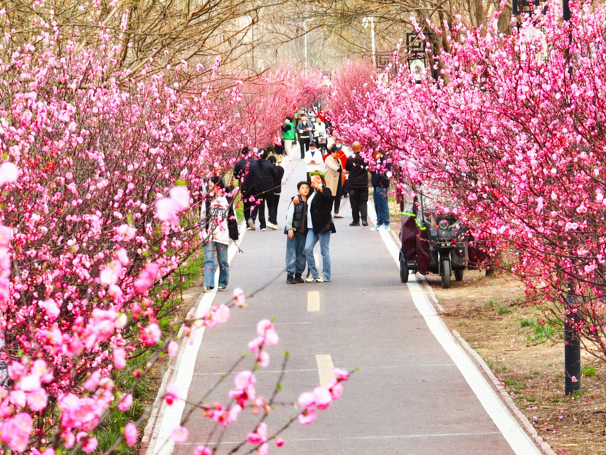 2月28日下午,游人在周口公園內(nèi)賞花游園,領(lǐng)略早春的秀美景色。近日,隨著氣溫回升,梅花競相綻放,“中原港城”周口迎來了春天的第一抹芬芳,吸引不少人們踏青賞春。