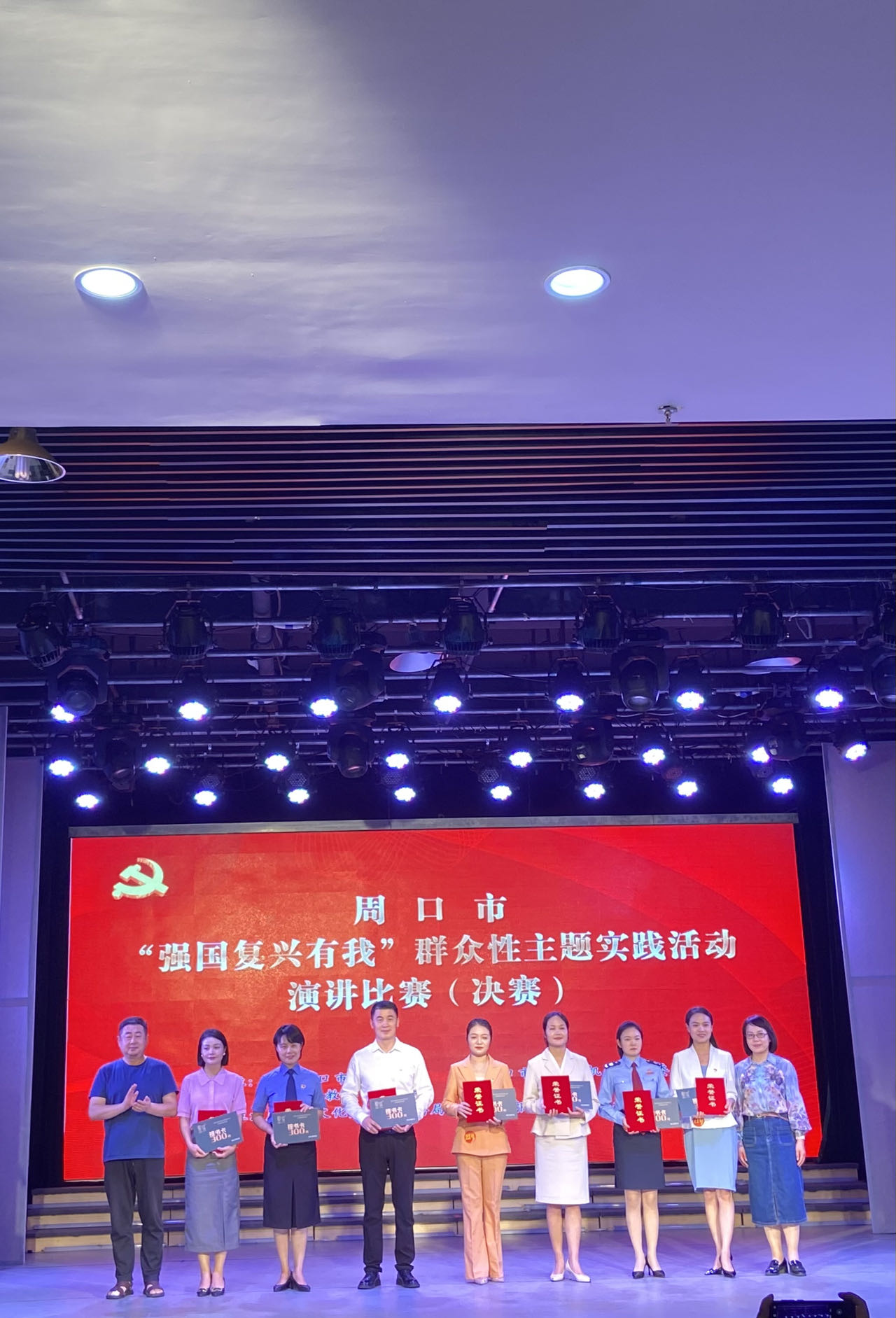 決賽過程中,選手立足中國式現(xiàn)代化全面推進(jìn)中華民族偉大復(fù)興的廣闊征程, 以各自學(xué)習(xí)、工作、生活為視角,以微故事、微黨課、微講述為主要方式,用飽滿的熱情講述了學(xué)習(xí)宣傳貫徹黨的二十大精神的個人感悟、具體實踐;講述了錨定“兩個確?!保瑢嵤?“ 十大戰(zhàn)略”,推進(jìn)中國式現(xiàn)代化周口實踐的實際行動;講述了繁榮發(fā)展文化事業(yè),深入實施文旅文創(chuàng)融合戰(zhàn)略周口實踐之“我”的認(rèn)識。選手們情感充沛、慷慨激昂,“強(qiáng)國有我 請黨放心”的口號鏗鏘有力,響徹劇場,展示了一代周口青年奮力譜寫中國式現(xiàn)代化周口絢麗篇章的信心和決心。