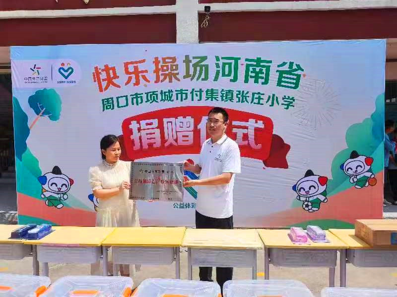“公益體彩獻愛心,快樂操場進校園”。6月20日,“公益體彩 快樂操場”走進項城市付集鎮(zhèn)張莊小學開展公益捐贈活動。學校負責人將錦旗送到周口體彩分中心副主任孫海永手中,對該中心的善舉表達了衷心感謝。