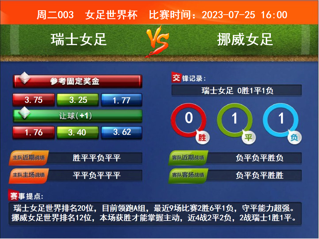 周二003 女足世界杯 瑞士女足VS挪威女足