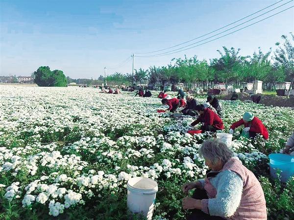 秋菊有佳色,裛露掇其英。11月7日上午,記者走進鹿邑縣宋河鎮(zhèn)張辛村,映入眼簾的是一片絢爛的菊花海洋,一團團、一簇簇的菊花競相盛開,伴著習習秋風,輕輕搖曳,淡雅的菊香溢滿田野。黃澄澄的菊花叢中,村民們正忙著采摘,大家邊聊邊忙活,呈現(xiàn)出一派繁忙的景象。