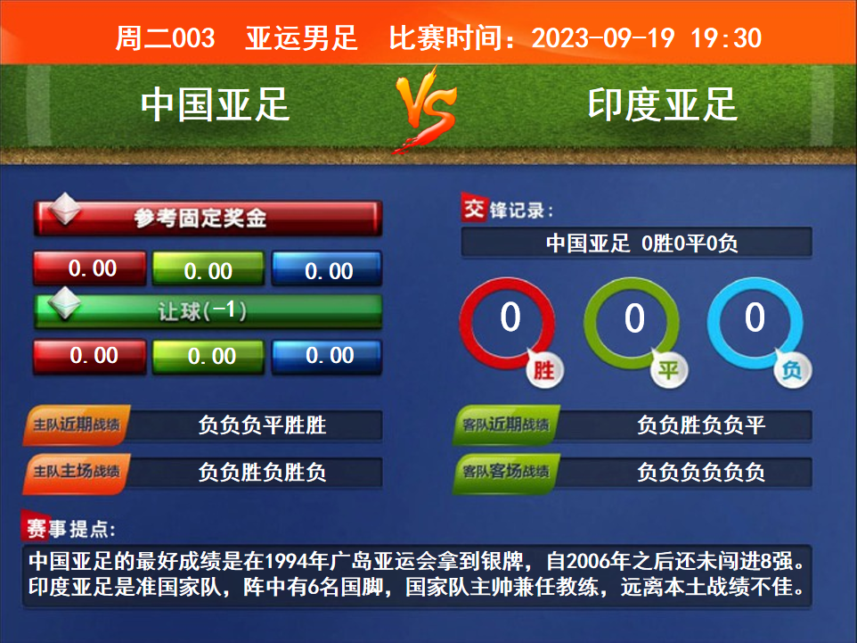 周二003 亞運(yùn)男足 中國亞足VS印度亞足