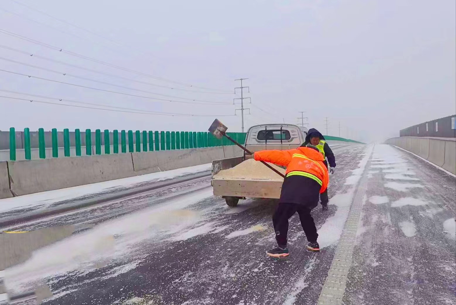 為有效應(yīng)對(duì)本輪大范圍雨雪冰凍天氣,保障普通公路安全暢通,周口市公路事業(yè)發(fā)展中心嚴(yán)格按照省市有關(guān)應(yīng)對(duì)低溫雨雪冰凍天氣的工作要求,進(jìn)一步細(xì)化工作方案,夯實(shí)工作責(zé)任,層層抓好落實(shí)。該中心組織“共產(chǎn)黨員應(yīng)急搶險(xiǎn)突擊隊(duì)”趕赴一線,讓黨旗飄揚(yáng)在除雪融冰應(yīng)急搶險(xiǎn)現(xiàn)場,吹響“我們是黨員突擊隊(duì),雪情就是命令,保通就是責(zé)任”的集結(jié)號(hào),全體參戰(zhàn)人員統(tǒng)一調(diào)度,分工協(xié)作,持續(xù)奮戰(zhàn)。