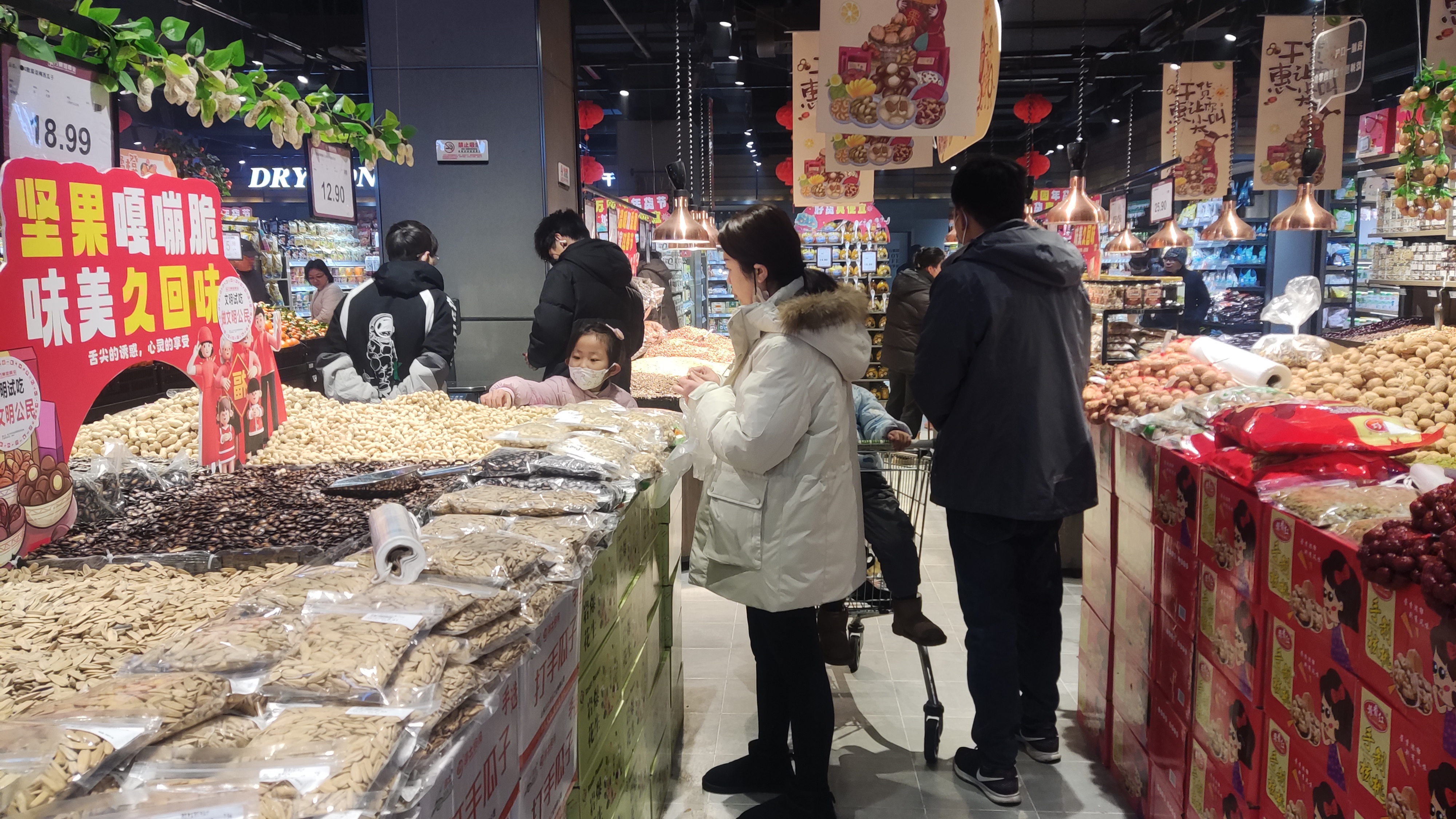 核桃、巴旦木、夏威夷果、碧根果……市民陳女士拎著一大包商品滿載而歸。“吃堅果健康又養(yǎng)生,家里人都喜歡吃,過年期間一家人邊聊天邊吃堅果,滿滿年味。”陳女士說,組合裝小袋堅果比較劃算,里面有剝好的杏仁、核桃、腰果等,價格不貴,方便實惠。