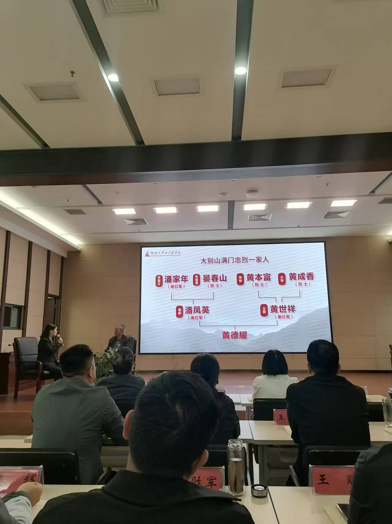 2013年,河南大別山干部學(xué)院成立,了解到黃德耀一家的紅色故事后,學(xué)院決定邀請黃德耀為學(xué)員講述紅色家史,讓更多人了解大別山精神。于是,黃德耀多了一個特殊身份——大別山干部學(xué)院特聘教師。